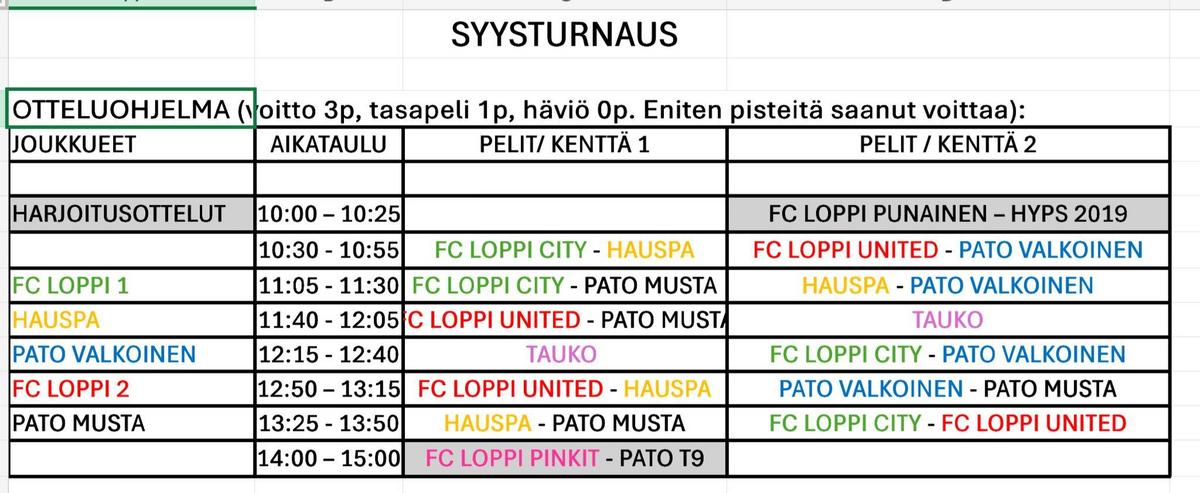 Paikalla seuran puffetti: makkaraa, pizzaa, mokkapaloja, kahvia ja mehua. Tervetuloa katsomaan ja kannustamaan!!